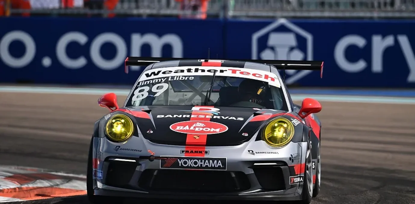 Miami Gardens, FL | Jimmy Llbire goes back-to-back to win both races at the Miami GP this weekend. Round 4 of the Porsche Sprint Challenge saw 28 drivers take to the track at the Miami International Autodrome before the inaugural F1 Miami GP. An incident in the first turn of the race saw the GT3 Cup 992 winner from yesterday, Carazo, and GT3 Cup 992 3rd place finisher, Castro, taking each other out and ending their chances of ending up on the podium again. The 992 class was won by Moisey Uretsky who had quite the turnaround from his DNF in Race 1. The 991 class was won once again by Jimmy Llibre leading every lap in the class and finishing 5th overall for the second day in a row.