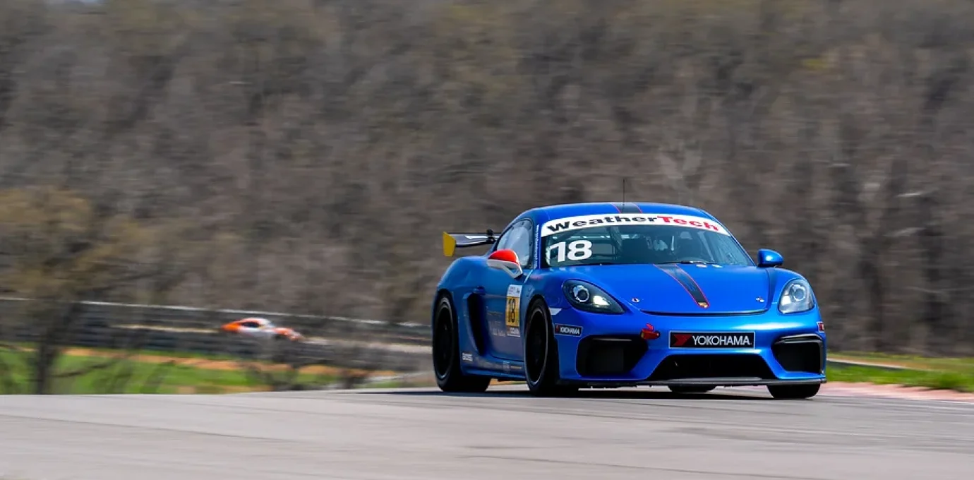 Gravois Mills, MO | A successful first official day of practice at Ozark International Raceway leaves drivers and teams impressed with this challenging course and state of the art facility. Three 40 minute practice sessions were held today for the 20 Cayman entries representing 9 different teams. Drivers gained confidence after each practice session to face the challenges of this 3.97 mile, 19 turn circuit which entitles over 1,200 feet of elevation change. The first-ever professional event to be held at Ozarks International Raceway will be Rounds 3 and 4 of the Porsche Sprint Challenge North America by Yokohama. Excitement is building throughout the Paddock as everyone settles into the brand new track. A fourth practice session will take place tomorrow followed by qualifications and Race 1. The first race of the weekend tomorrow will be live streamed via Race Control at 3:00 pm CST. Race 2 of the weekend, Sunday, will also be live streamed via Race Control at 10:50 am CST.